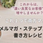 これからは良質なお客様を増やし、心地いい関係の中で売上を上げていきませんか? 【これ1つで両方マスター「メルマガ&ステップメール」書き方レシピ動画講座】 で、文...